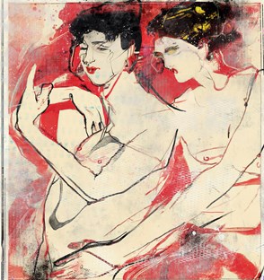 - Håndkolorert mixed media