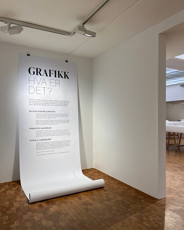 Verkene er organisert etter trykketeknikk – fra høytrykk og dyptrykk til plantrykk – og gir publikum mulighet til å orientere seg både visuelt og teknisk, på tvers av uttrykk og kunstnerskap. Gjennom tydelig formidling gis det innsikt i grafikkens metoder og begreper. Hva skiller etsning fra litografi? Hvordan preger trykkplaten det visuelle uttrykket? Utstillingen legger til rette for både faglig fordypning og første møte med grafikk som kunstform.