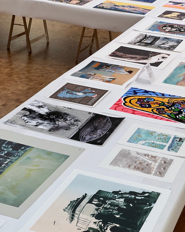 Velkommen til et ferdigdekket grafikk-bord i kunsthallen mandag 19. mai kl. 18.00. KHÅK Kunsthall presenterer GRAFIKK_BORD – en salgsutstilling som utforsker bredden og dybden i original grafikk. I tre uker vises et omfattende utvalg trykkede originalverk fra over 130 kunstnere, lagt ut på bordflater i kunsthallen. Utstillingsformatet inviterer til en direkte og sanselig tilnærming til grafikken som kunstform.